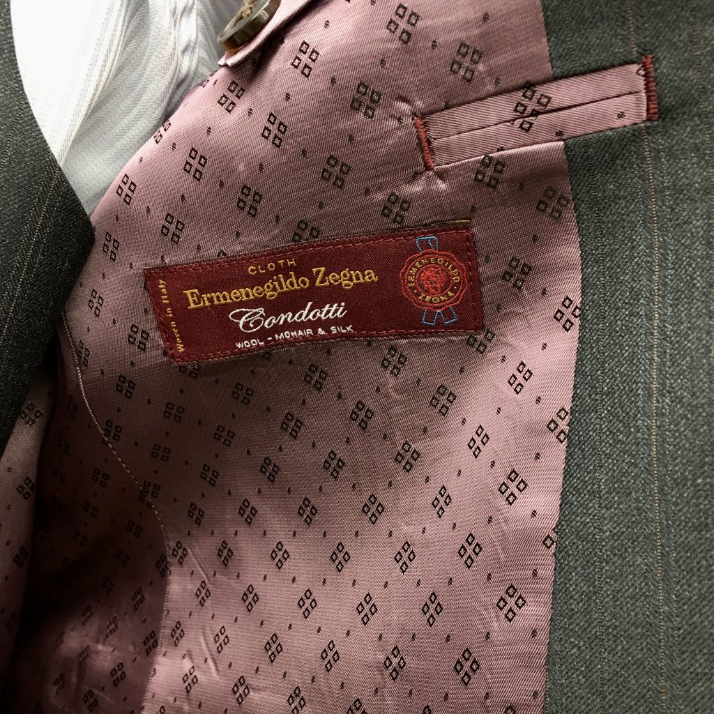 ゼニアは艶が違いますね。ホーンボタンにキュプラ裏地で高級仕様。貫禄のゼニアです。