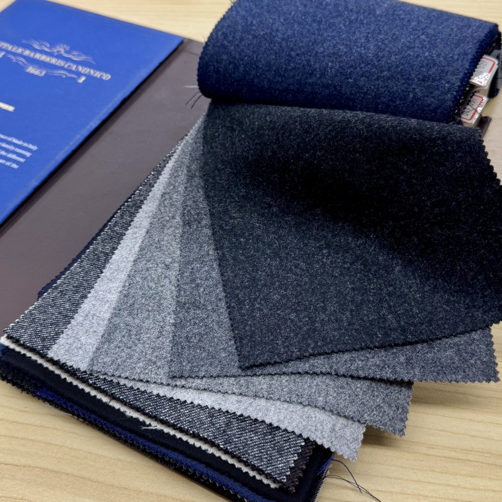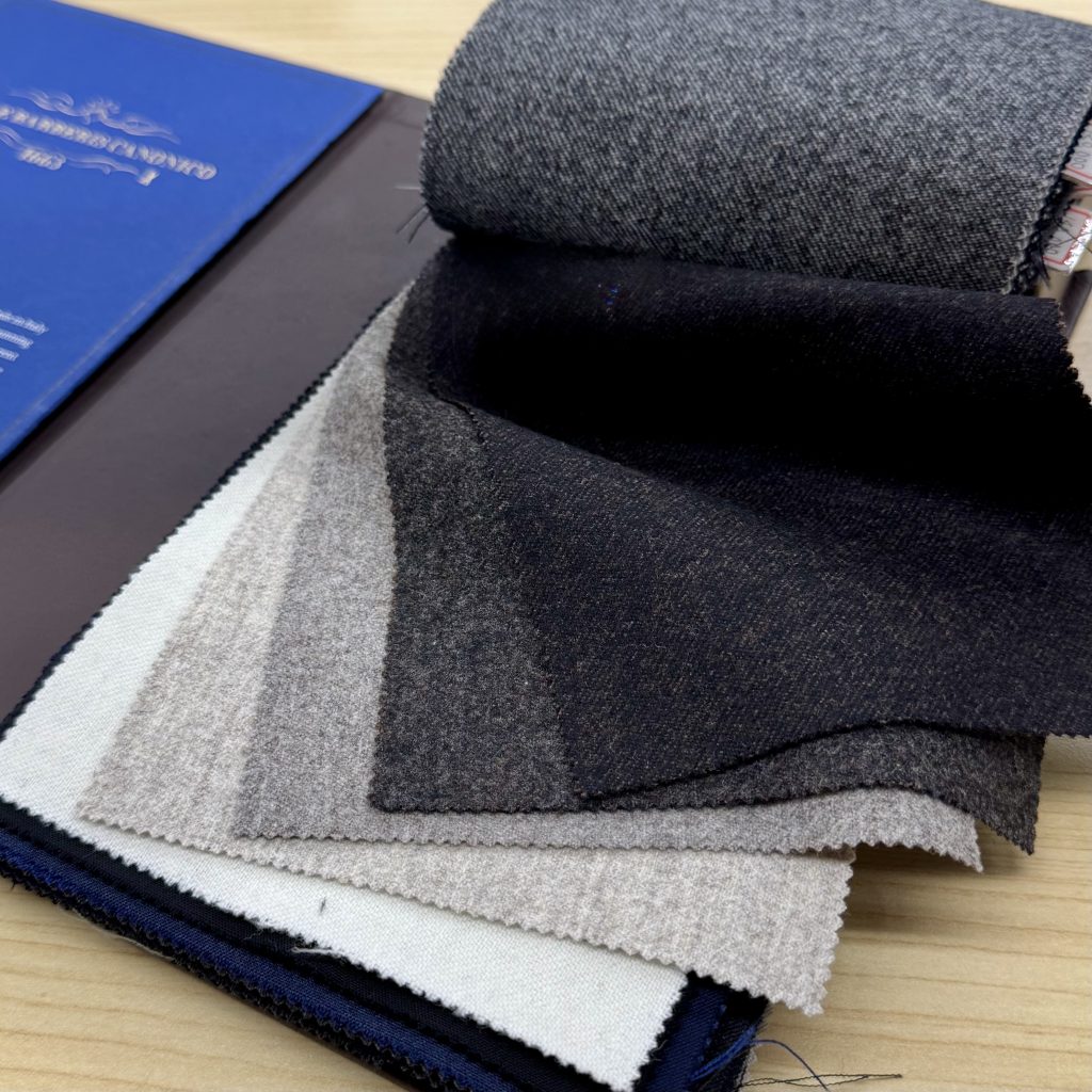 〇2025年秋冬より270g/mの薄手フランネルもリリースいたしました。こちらは通常のスーツ生地並みの重さになるので、軽やかに、春も秋も長い活躍しそうです。(全11色)